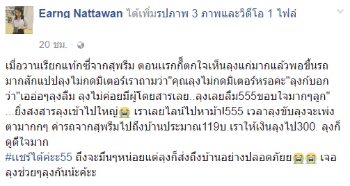โซเชียลแชร์คลิปประทับใจ เด็กสาวขึ้นแท็กซี่กลับบ้าน แต่คุณลุงลืมกดมิเตอร์ เหตุไม่ชินเพราะไม่ค่อยมีผู้โดยสารขึ้นรถ ด้านเด็กสาวสงสารรีบไลน์หาแม่ ก่อนควักเงินช่วยเหลือลุง ชาวเน็ตปรบมือชื่นชม หลายครั้งเราจะเห็นข่าวคราวเกี่ยวกับการบริการของรถแท็กซี่ไม่ค่อยจะดีนัก ไม่ว่าจะเป็นการปฏิเสธผู้โดยสาร พูดจาลวนลาม หรือข่มขู่ผู้โดยสาร ขับรถอ้อมบ้าง หรือไม่ก็มักอ้างว่าไม่มีเงินทอน แต่ขณะที่โชเฟอร์แท็กซี่เองก็ไม่ไว้ใจผู้โดยสารเช่นกัน เพราะเกรงว่าผู้โดยสารจะเป็นคนร้ายดักจี้ชิงทรัพย์ ให้เห็นตามข่าวอยู่บ่อย ๆ แต่เหตุกาณ์เหล่านี้ก็ไม่ได้เกิดขึ้นเสมอไป