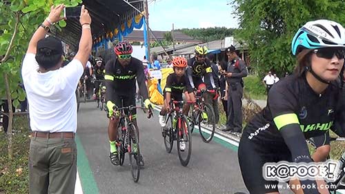 จากนั้น รัฐมนตรีว่าการกระทรวงคมนาคม ร่วมเป็นเกียรตินำคณะผู้บริหารปั่นจักรยานเข้าเขื่อนรัชชประภา