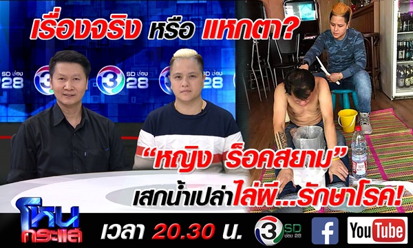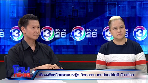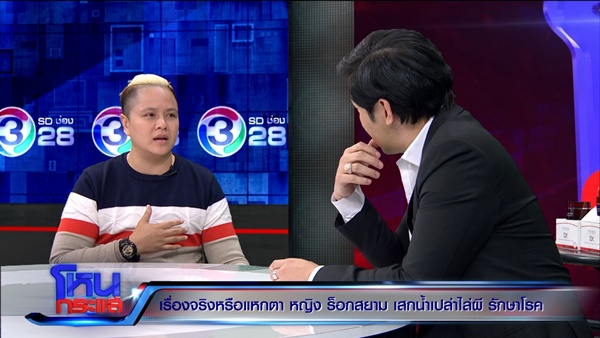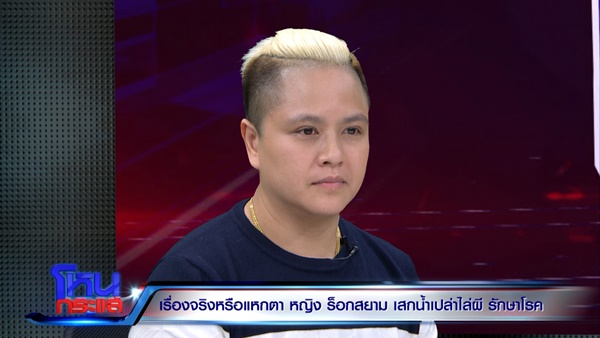 หญิง ร็อกสตาร์ : ใช่ค่ะ พอเรามีพลังด้านนี้ เราก็โดนบังคับ จากเราป่วยก่อนเลย ป่วยแบบไม่มีสาเหตุ จนเราบอกว่าเราจะหยุดร้องเพลงแล้วมารักษาคน แค่วันเดียวหายเลย พอหลังจากนั้นก็มาเจอน้องอีกคนหนึ่ง 11 ขวบ เราไปกินข้าวกับแฟนคลับ เขาก็บอกว่ารักษายังไงก็ไม่หายเป็นโรคพุ่มพวง และมีแผลที่หน้าอก คุณหมอว่าให้คุณพ่อทำใจเพราะว่าเด็กจะอยู่ได้ไม่นาน คุณพ่ออยากจะทำอะไรก็ทำ เพราะว่าน้องเป็นเยอะ นี่คือคำพูดของคุณพ่อ เราก็อธิษฐานว่าถ้าเรามีบุญร่วมกันก็ขอให้น้ำส่งผล เขาดื่มนิดหนึ่งก็อาเจียน พอไปตรวจกับคุณหมอปรากฏว่าดีขึ้น พอครั้งที่ 2 เราทำให้อีกรอบ แผลที่หน้าอกยุบลง ทุกวันนี้แทบจะไม่ต้องกินยาแล้ว