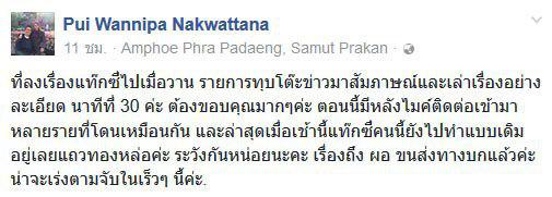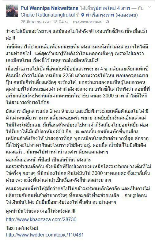 ที่มาบอกเล่าเรื่องราวมิจฉาชีพในคราบแท็กซี่ผ่าน เฟซบุ๊กส่วนตัว Pui
