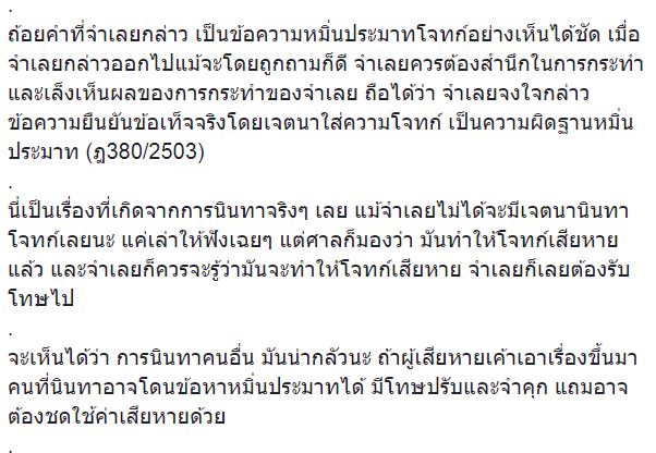 ขาเม้าท์มีหนาว เพจสายตรงกฎหมาย ระบุนินทาคนอื่นทำให้เสียหายผิดโดนข้อหาหมิ่นประมาท พร้อมยกเคสตัวอย่างที่เคยเกิดขึ้นจริง