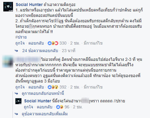 เมื่อวันที่ 26 กรกฎาคม 2560 เฟซบุ๊ก Social Hunter ได้มีการแชร์เรื่องราวของหญิงสาวรายหนึ่ง ซึ่งถ่ายภาพแนวเซ็กซี่และอนุญาตให้เพจหนึ่งโพสต์ ต่อมาได้มีโซเชียลนำภาพของผู้หญิงคนนี้มาเทียบกับอีกรูปแล้วเขียนแคปชั่นเทียบกัน ทำให้หญิงคนดังกล่าวถูกวิจารณ์เป็นวงกว้าง จนต้องไปเคลียร์กันหลังแชท และอาจจะบานปลายไปจนถึงการฟ้องร้อง