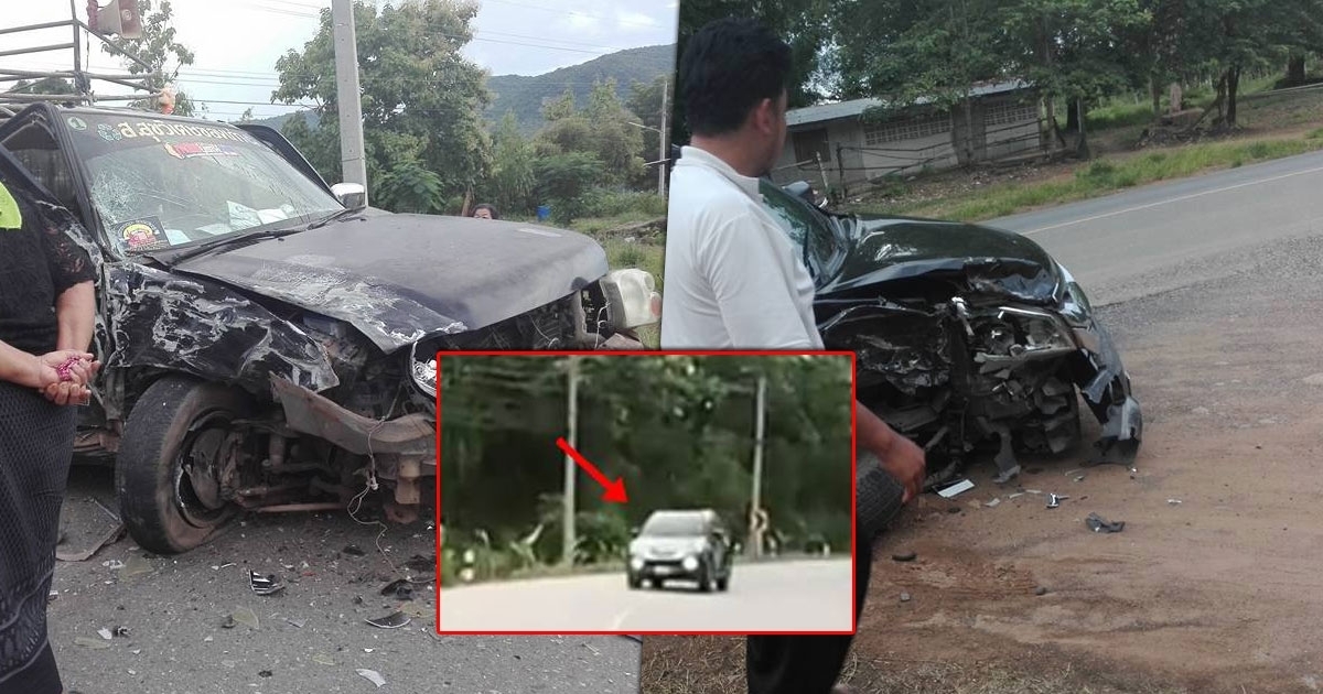 คลิปรถยนต์แหกโค้ง พุ่งชนกระบะหน้าพังยับเยิน กระจกแตก คนในรถกรีดร้อง โชคดีทุกคนได้รับบาดเจ็บเพียงเล็กน้อย ส่วนโซเชียลตำหนิคู่กรณี
