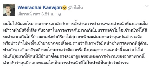 เมื่อวันที่ 31 สิงหาคม ผู้ใช้เฟซบุ๊ก Weerachai Kaewjan ได้โพสต์คลิปเจอด่านตรวจขอค้นรถพร้อมระบุว่า
