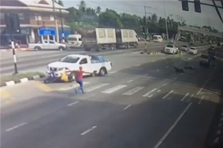 วันที่ 4 กันยายน เฟซบุ๊ก สถานีตำรวจภูธรท่ายาง จังหวัดเพชรบุรี ได้เปิดคลิปวงจรปิดเหตุการณ์อุบัติเหตุบนท้องถนน ซึ่งครั้งนี้เกิดจาก