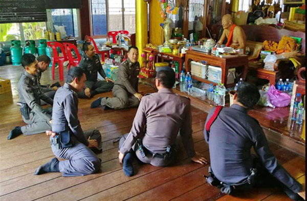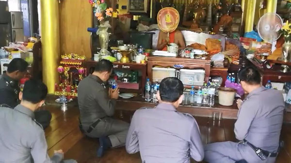 ทั้งนี้ขณะที่กำลังทำบุญ พระอาจารย์ใหญ่ เจ้าอาวาสวัดคลองเขื่อน ซึ่งเป็นสมภารวัดสูงอายุ วัย 83 ปี ได้ยกตาลปัตรขึ้นบังหน้าพร้อมกับหลับตาสวดบทยะถา สัพพี อย่างช้า ๆ ขณะเดียวกันกลุ่มเจ้าหน้าที่ตำรวจได้รับแจ้งเหตุจากวิทยุสื่อสาร ให้ช่วยไปสกัดจับคนร้ายขับรถแหกด่านหนีตำรวจจาก สภ.บางน้ำเปรี้ยว