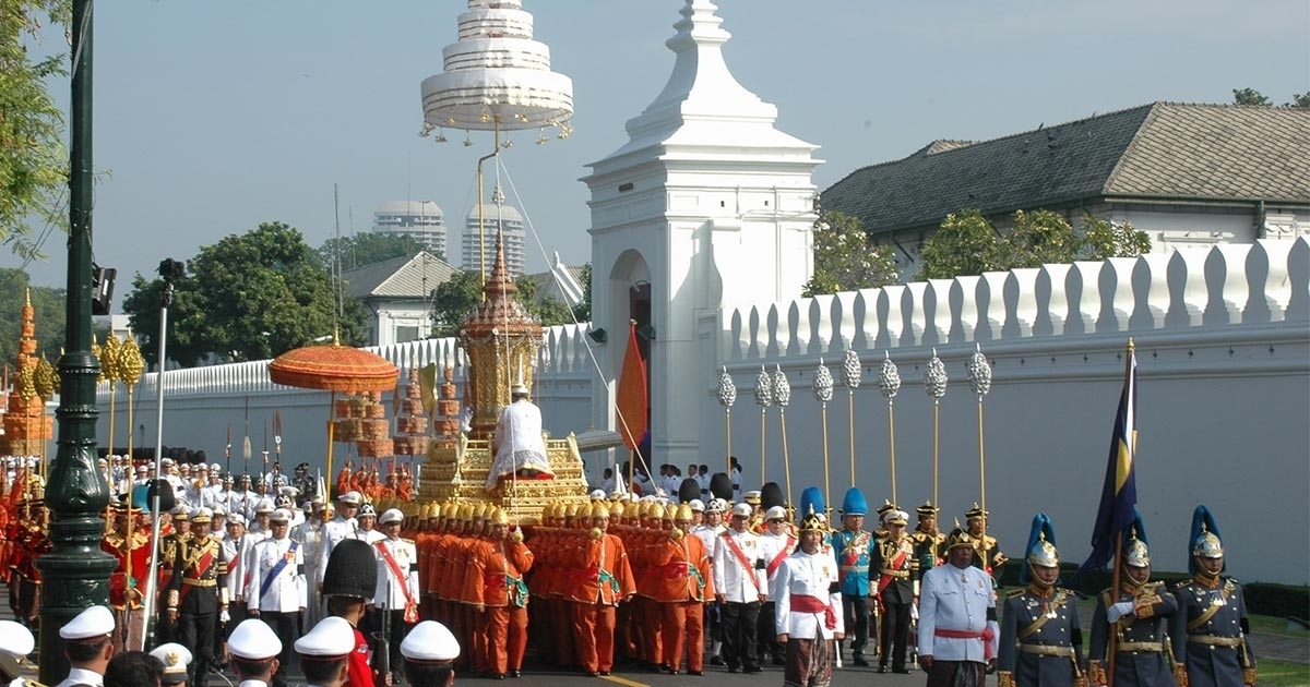 ขบวนพระบรมราชอิสริยยศ พร้อมเครื่องประกอบพระอิสริยยศในริ้วขบวน สำหรับงานอัญเชิญพระบรมศพพระมหากษัตริย์ไทย