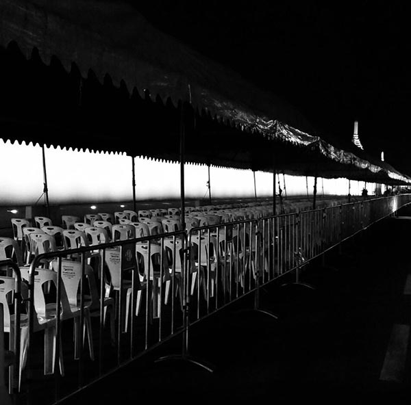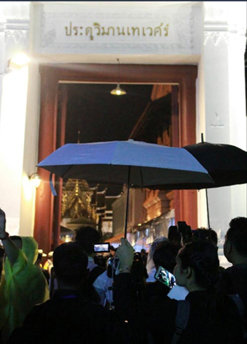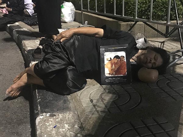 แน่นอนว่า คลื่นพสกนิกรต่างหลั่งไหลด้วยหัวใจอันมุ่งมั่นที่จะได้มากราบพ่อหลวง แม้จะเหนื่อยล้าและต้องรอนานเพียงใด แต่พวกเขาเองหาได้ลดละความตั้งใจ ทั้งยังคงนั่งรอจนนาทีสุดท้าย...จนกว่าประตูวังจะปิด