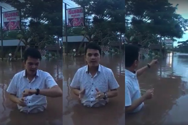 และยังชื่นชมชายคนในคลิปว่ามีความตั้งใจถึงขั้นไปยืนกลางน้ำท่วมแล้วรายงานสถานการณ์