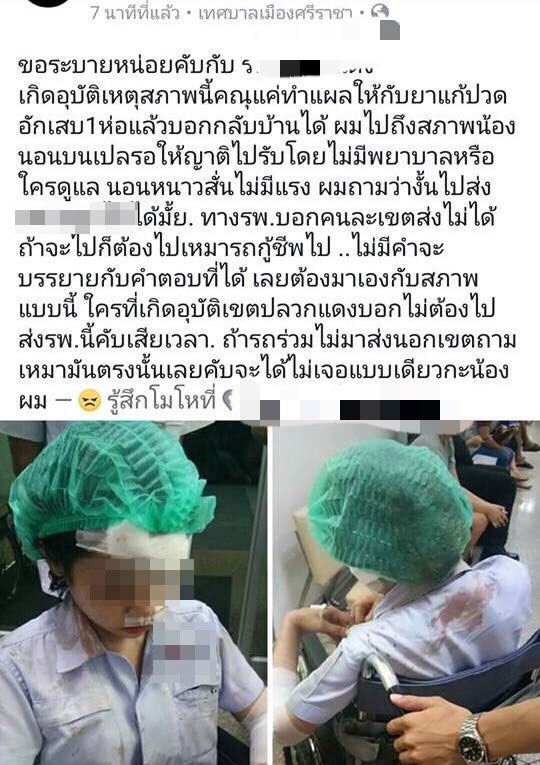 เกี่ยวกับเรื่องดังกล่าว ล่าสุด (9 ตุลาคม 2560) นายพรมจักร ขวานแจ่ม ผู้โพสต์ข้อความดังกล่าว เปิดเผยว่า ตนเองเป็นพี่ชายของผู้บาดเจ็บ เห็นสภาพของน้องสาวตอนนั้นซึ่งนอนอยู่บนเตียง ตนเข้าใจว่าอาการหนัก จึงสงสัยว่าทำไมหมอไม่ให้นอนที่โรงพยาบาล ตนจึงโพสต์ข้อความระบายลงในเฟซบุ๊ก แต่หลังจากโพสต์ไปแล้ว มาคิดได้จึงลบข้อความดังกล่าวออกไป แต่ก็ไม่ทันแล้ว ได้มีคนแชร์ต่อ ๆ กันไป จนกลายเป็นเรื่องโด่งดังขึ้นมา