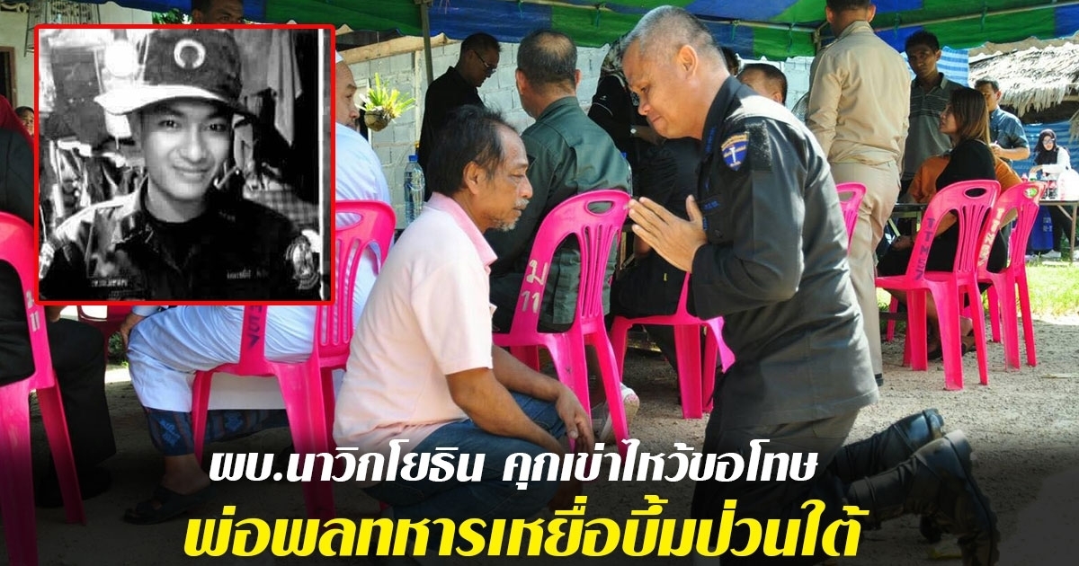 ผู้การกรมทหารพรานนาวิกโยธิน คุกเข่าก้มกราบขออภัยบิดา อส.ทพ. ที่พลีชีพจากเหตุลอบวางระเบิดเมื่อวานที่บาเจาะ นราธิวาส นี่ไม่ใช่ความผิดของท่านครับ ท่านทำดีที่สุดแล้ว แอดมินรู้มาว่า ท่านจะเรียกลูกน้องในค่ายท่านว่าลูกเสมอ"