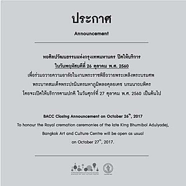 ในวันพระราชพิธีถวายพระเพลิงพระบรมศพพระบาทสมเด็จพระปรมินทรมหาภูมิพลอดุลยเดช ในวันที่ 26 ตุลาคม 2560 ซึ่งเป็นพระราชพิธีที่มีความสำคัญต่อจิตใจของปวงชนชาวไทยทั้งประเทศ สถานที่หลายแห่งได้ออกประกาศปิดทำการ เพื่อให้พนักงานเข้าร่วมวางดอกไม้จันทน์ในพระราชพิธีอันสำคัญยิ่ง