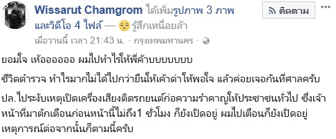 เรื่องฮือฮาอีกแล้วสำหรับตำรวจกับประชาชน เมื่อผู้ใช้เฟซบุ๊ก Wissarut Chamgrom ได้โพสต์คลิปเหตุการณ์เข้าระงับเหตุเมื่อวันที่ 12 ตุลาคม 2560 โดยระบุว่า