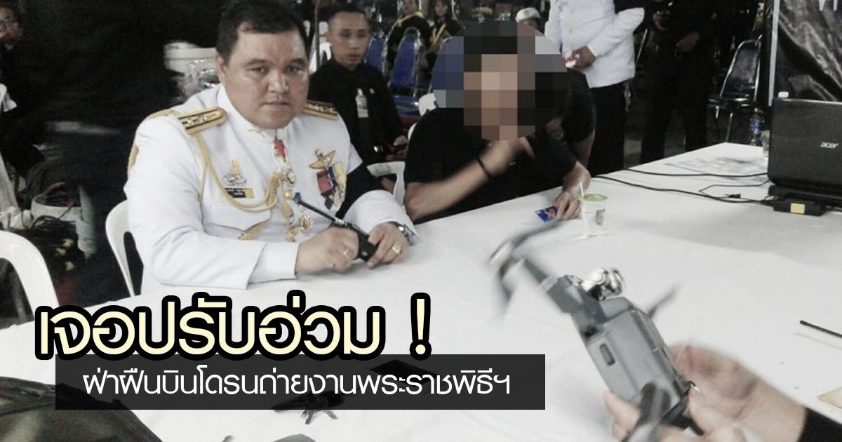 ต่อมาทราบชื่อผู้กระทำความผิด คือ นายไกรวุฒิ ตันติวุฒิ อายุ 50 ปี อาชีพผู้รับเหมาก่อสร้าง โดยภายหลังการสอบสวนเบื้องต้น เจ้าตัวให้การอ้างว่า ตนเพิ่งกลับมาจากประเทศญี่ปุ่น และได้ซื้อโดรนกลับมาด้วย แต่ไม่ทราบว่ามีการประกาศห้ามใช้โดรนขึ้นถ่ายภาพในงานพระราชพิธีฯ จึงได้นำโดรนที่ซื้อมาใหม่มาขึ้นบินทดสอบถ่ายภาพในงาน