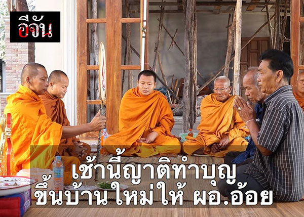 ล่าสุด เมื่อวันที่ 28 ตุลาคม 2560 เฟซบุ๊กเพจ อีจัน ได้เผยภาพพร้อมรายงานระบุว่า ทางด้านครอบครัวพร้อมด้วยญาติของ ผอ.อ้อย ได้จัดพิธีทำบุญขึ้นบ้านใหม่ที่ยังสร้างไม่เสร็จให้ ผอ.อ้อย เพื่อให้ดวงวิญญาณรับทราบว่าบ้านสร้างเสร็จแล้ว ซึ่งเป็นพิธีกรรมพื้นบ้านตามความเชื่อของคนในหมู่บ้าน