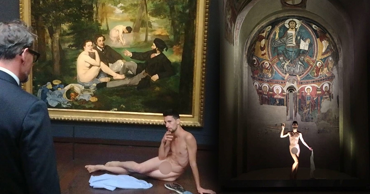 วันที่ 31 ตุลาคม 2560 เว็บไซต์มิเรอร์ รายงานว่า เอเดรียน ปิโน โอลิเวอรา หนุ่มศิลปินด้านการแสดง วัย 28 ปี จากเมืองบาร์เซโลนา ประเทศสเปน สร้างความตกตะลึงให้กับผู้คนเป็นอย่างมาก ภายหลังจากเขาได้ทำการเปลือยผ้าล่อนจ้อน แล้วไปโพสท่าต่าง ๆ ที่หน้าผลงานศิลปะชื่อดัง ทั้งที่เป็นรูปปั้นและภาพวาด