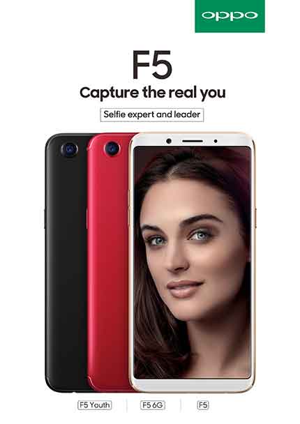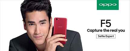 OPPO (ออปโป้) ผู้นำด้านเซลฟี่เอ็กซ์เพิร์ต เผยโฉม OPPO F5 (ออปโป้เอฟไฟว์) ครั้งแรกกับหน้าจอแสดงผลแบบ Full Screen ซึ่งครั้งนี้ออปโป้ได้นำเทคโนโลยี A.I. เข้ามาประยุกต์ใช้กับการปรับแต่งความสวยงามเพื่อการถ่ายภาพเซลฟี่ (Selfie Beautification) ซึ่งเป็นการยกระดับคุณภาพของภาพถ่ายเซลฟี่ไปอีกขั้น โดยจะเริ่มเปิดให้จองได้ตั้งแต่วันที่ 2 - 10 พฤศจิกายน 2560 และวางจำหน่ายในประเทศไทยในวันที่ 11 พฤศจิกายนนี้ 2560 สนนราคา 9,990 บาท