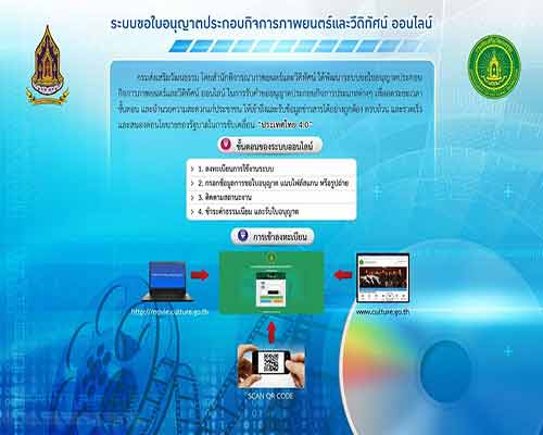 ดังนั้น กระทรวงวัฒนธรรม โดย สวธ. จึงได้พัฒนาการขอใบอนุญาตประกอบกิจการภาพยนตร์และวีดิทัศน์ ในการรับคำขออนุญาตประกอบกิจการประเภทต่างๆผ่านระบบออนไลน์ ได้แก่ กิจการโรงภาพยนตร์, กิจการร้านวีดิทัศน์, กิจการให้เช่า แลกเปลี่ยน หรือจำหน่ายภาพยนตร์, กิจการให้เช่า แลกเปลี่ยน หรือจำหน่ายวีดิทัศน์ โดยที่ผู้ประกอบการสามารถยื่นคำขอ พร้อมแนบเอกสารหลักฐาน ผ่านระบบออนไลน์เป็นการลดเอกสารหลักฐานที่จะต้องยื่น รวมถึงสามารถติดตามสถานะยื่นคำขอผ่านระบบได้ตลอดเวลา ลดการเดินทางมาติดต่อกับหน่วยงาน โดยผู้ประกอบกิจการสามารถเข้าใช้บริการได้ที่ www.culture.go.th หรือสแกน QR Code ทั้งนี้ จากการทดลองใช้ระบบดังกล่าวในเขตกรุงเทพมหานคร พบว่าสามารถ ใช้เวลาในการขอใบอนุญาต จากเดิม 46 วัน เหลือ 16 วัน ลดระยะเวลาได้ถึง 30 วัน และภายในปี 2561 ระบบนี้จะเริ่มให้บริการในส่วนภูมิภาค เพื่ออำนวยความสะดวกแก่ผู้ประกอบการในการยื่นขอใบอนุญาต และนำไปสู่การพัฒนา Application รองรับการใช้งานบนโทรศัพท์เคลื่อนที่ (Smart Phone) ให้สะดวกและรวดเร็วยิ่งขึ้น