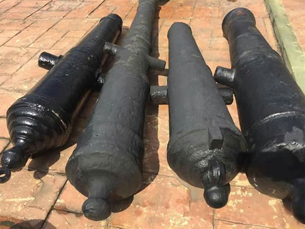 สำหรับปืนใหญ่ที่ใหญ่ที่สุดมีน้ำหนัก 5 ตัน ฝังอยู่ในดินลักษณะปากกระบอกปืนหันหน้าลงดิน ลึกประมาณ 2 เมตร ส่วนสภาพปืนใหญ่ที่พบนั้น ยังอยู่ในสภาพดี เป็นปืนโบราณที่ต้องอัดลูกปืนใหญ่ ดินปืน ใส่ทางปากกระบอกปืน