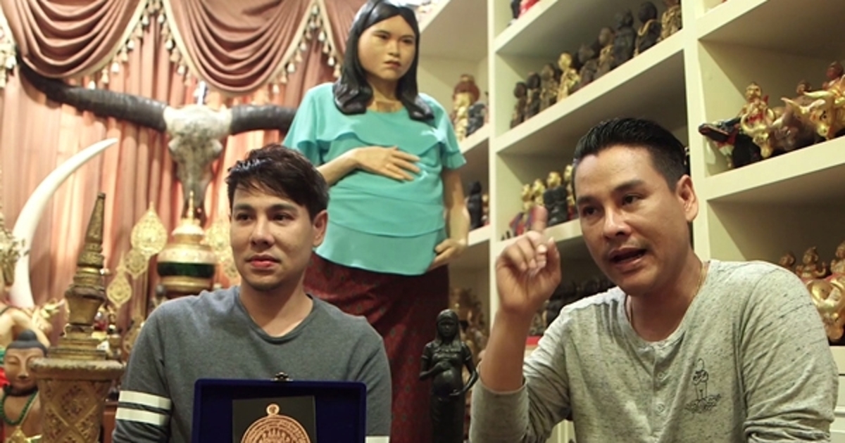 เกี่ยวกับเรื่องนี้ วันที่ 14 พฤศจิกายน 2560 รายการล้อมวงข่าว ช่องอมรินทร์ ทีวี ได้พูดคุยกับคุณแจ๊ค และคุณจิลล์ ซึ่งเล่าว่า ย้อนไป ปี 2555 ทั้งคู่ได้รับปั้นเหน่งของพี่นวลมาจาก อาจารย์ก่าย ที่นับถือ โดยพี่นวลเป็นชาวบ้านคนหนึ่งที่อาศัยอยู่ในจังหวัดภาคกลาง อายุ 23 ปี และตายทั้งกลมเพราะถูกควายเผือกขวิด ซึ่งในทางไสยศาสตร์ถือว่าวิญญาณที่ตายผิดธรรมชาติในลักษณะนี้จะเฮี้ยนมาก เหมาะแก่การนำมาทำเป็นเครื่องราง เสริมดวงชะตา ทั้งความรัก หน้าที่การงาน ส่วนข้อห้ามนั้น คือ รักษาศีล โดยเฉพาะศีลข้อ 3 คือ ห้ามผิดลูกผิดเมียคนอื่น พี่นวล ก็จะช่วยเสริมดวงชะตาให้ดีขึ้นเรื่อย ๆ