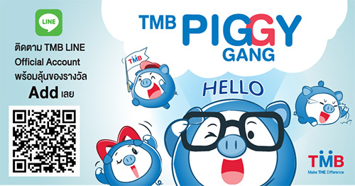 Download Sticker PIGGY GANG และเพิ่มเพื่อน / Add Friend: TMB LINE Official Account ได้ที่ Link: https://goo.gl/eEmJx9