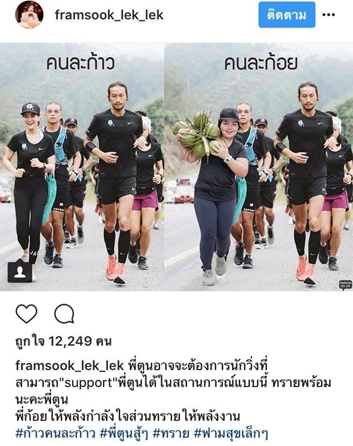 "พี่ตูนอาจจะต้องการนักวิ่งที่สามารถ "support" พี่ตูนได้ในสถานการณ์แบบนี้ ทรายพร้อมนะคะพี่ตูน พี่ก้อยให้พลังกำลังใจส่วนทรายให้พลังงาน #ก้าวคนละก้าว #พี่ตูนสู้ๆ #ทราย #ฟามสุขเล็กๆ"