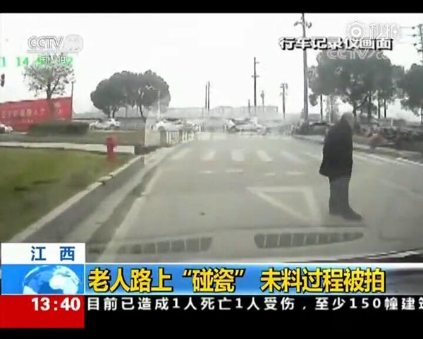 วันที่ 7 ธันวาคม 2560 สำนักข่าว China Xinhua News มีรายงานเรื่องราวชวนเอือมระอาสำหรับผู้ใช้รถ หลังจากที่คนขับรถคันหนึ่งในเมืองหนานชาง มณฑลเจียงซี ประเทศจีน มีอันต้องพบกับชายหัวหมอที่หวังจะเรียกร้องเงินจากเขา ด้วยการแกล้งทำเป็นถูกรถชน นอนร้องโอดโอยอยู่ที่ล้อรถ ซึ่งด้วยสภาพของชายคนนี้ที่เป็นคนชราและการแสดงของเขาแล้ว บอกได้เลยว่าเจ้าของรถคันนี้คงงานเข้าอย่างจัง ถ้าไม่ได้กล้องหน้ารถของเขาที่เข้ามาเปลี่ยนสถานการณ์