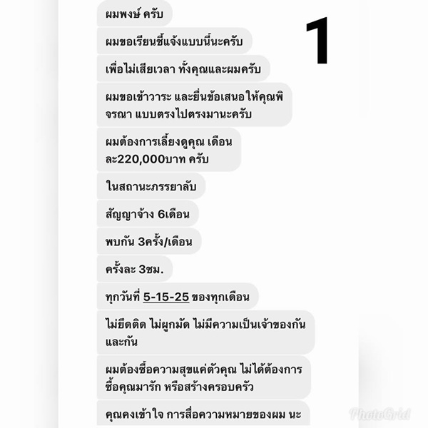 วันที่ 12 ธันวาคม 2560 รายการบรรจงชงข่าว ได้รับการร้องเรียนถึงพฤติกรรมชายคนหนึ่งจากผู้สื่อข่าวสาวคนหนึ่ง ที่ใช้เฟซบุ๊กส่งข้อความยื่นข้อเสนอให้เป็นภรรยาลับ โดยจะให้เงินเดือนละ 220,000 บาท แลกกับการพบกันเพื่อมีเพศสัมพันธ์ 3 ครั้งต่อเดือน แต่ต้องไม่ผูกมัดและไม่มีการแสดงออกในความรักต่อกัน ไม่ต้องการสร้างครอบครัว และได้ขอนัดเซ็นสัญญาที่ระบุว่า หากฝ่ายหญิงอ่านสัญญาแล้วไม่ตกลง ยินดีจ่ายค่าเสียเวลา 25,000 บาท แต่หากตกลงก็จะไปตรวจร่างกายทั้งสองฝ่ายต่อไป รวม 2 ครั้ง ก่อนจะเริ่มต้นปฏิบัติตามสัญญา