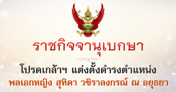 เมื่อวันที่ 13 ธันวาคม 2560 เว็บไซต์ราชกิจจานุเบกษา เผยแพร่ ประกาศแต่งตั้งข้าราชการในพระองค์ พลเอกหญิง สุทิดา วชิราลงกรณ์ ณ อยุธยา ให้ดำรงตำแหน่ง