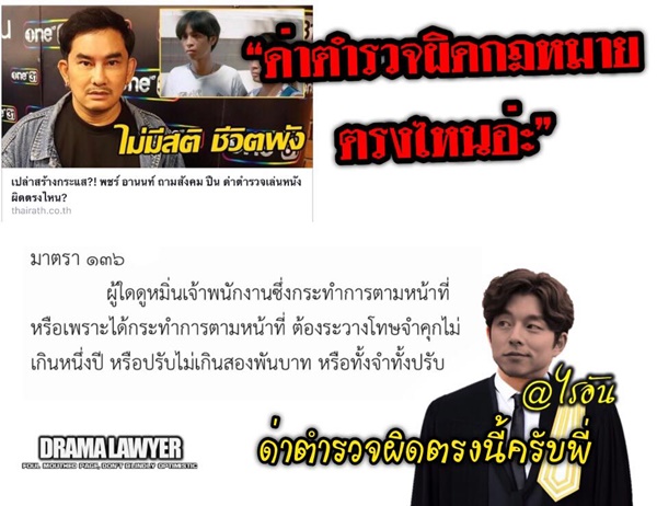 เพจกฎหมาย ตอกกลับ พชร์ อานนท์ ปมจ้าง ปืน เล่นหนัง ระบุด่าตำรวจผิดตรงไหน เจอยกมาตรา 136 มาให้ดูชัด ๆ