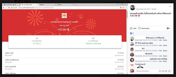 - แชร์ Link ดังกล่าวออกไปผ่านช่องทางโซเชียลมีเดียของคุณ เช่น เฟซบุ๊ก, ทวิตเตอร์, แมสเซนเจอร์, ไลน์, วีแชต, กูเกิ้ลพลัส เพื่อให้เพื่อน ๆ เข้ามากดรับเงินของขวัญ