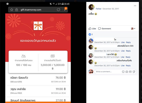 อย่าพลาดนาทีทอง ซองนี้เป็นของใคร ? งานนี้แจกเงินกันเน้น ๆ เฉพาะคนที่มีแอพลิเคชั่น "TrueMoney Wallet" เท่านั้น ! ซึ่งภายในเวลาไม่ถึงนาทีซองของขวัญที่แจกหมดเกลี้ยงภายในพริบตา เลยทำให้เกิดกระแสสร้างซอง-รับซองของขวัญกันยกใหญ่ในโลกโซเชียล สร้างความสนุกและลุ้นมันส์มากในแก๊งเพื่อน ๆ