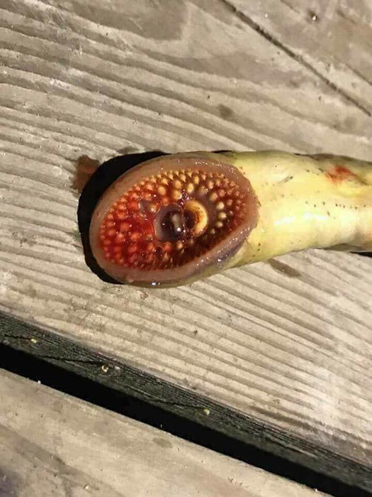 โลกออนไลน์แตกตื่น ภาพปลาหน้าตาประหลาดขณะดูดเลือดเหยื่อ รูปร่างคล้ายปลาไหล แต่มีฟันแหลมคม เห็นแล้วน่าขนลุก !!