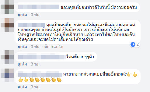 ด้านผู้ที่ได้อ่านเรื่องดังกล่าว ต่างชื่นชมเจ้าของรถเป็นจำนวนมาก ถึงความมีน้ำใจ และขอให้ชีวิตมีแต่ความสุข