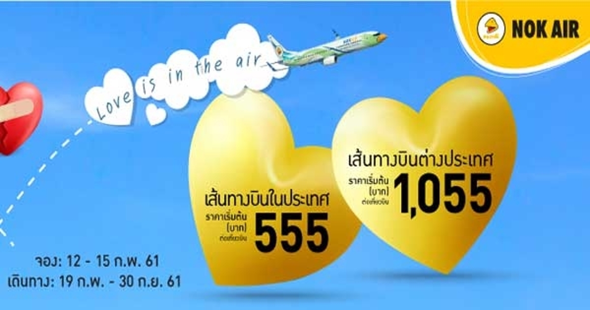 Love is in The (NOK) Air บินราคาประหยัดทั่วไทย เริ่มต้นแค่ 555 บาท