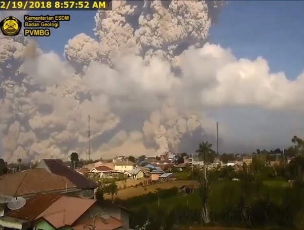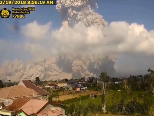 วันที่ 20 กุมภาพันธ์ 2561 เว็บไซต์ news.com.au รายงานว่า ภูเขาไฟซีนาบุง บนเกาะสุมาตรา ประเทศอินโดนีเซีย เกิดการปะทุครั้งใหม่ในช่วงเช้าวันที่ 19 กุมภาพันธ์ ที่ผ่านมา ส่งกลุ่มควันและเถ้าถ่านพวยพุ่งขึ้นสู่ท้องฟ้าในระดับความสูงถึง 5,000 เมตร กระจายวงกว้างในรัศมี 5 กิโลเมตร โดยบ้านเรือนและพื้นที่รอบ ๆ ภูเขาไฟต่างก็ถูกปกคลุมไปด้วยเถ้าถ่านหนา นอกจากนี้ยังมีแผ่นดินไหวและมีเศษหินร่วงตกลงมาใส่หมู่บ้านต่าง ๆ รอบพื้นที่ภูเขาไฟ