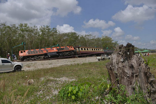 ส่วนอีกจุดเป็นขบวนรถไฟขบวนที่ 38 กรุงเทพฯ-ตรัง ตกรางระหว่างสถานีห้วยยอด-สถานีตรัง ซึ่งต้องปิดการเดินรถเช่นกัน