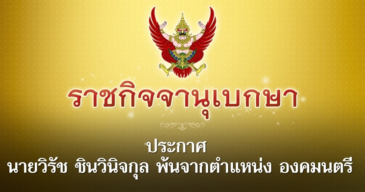 สมเด็จพระเจ้าอยู่หัวมหาวชิราลงกรณ บดินทรเทพยวรางกูร มีพระราชโองการโปรดเกล้าโปรดกระหม่อมให้ประกาศว่า นายวิรัช ชินวินิจกุล องคมนตรี พ้นจากตําแหน่ง องคมนตรี