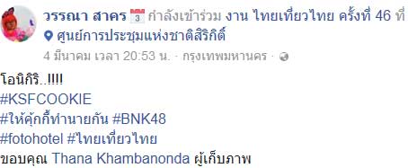 ภาพและข้อมูลจาก เฟซบุ๊ก งานไทยเที่ยวไทย บาย พีเคเอ็กซิบิชั่น แมนเนจเม้นท์, วรรณา สาคร