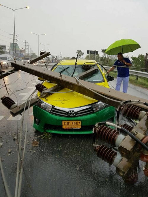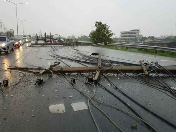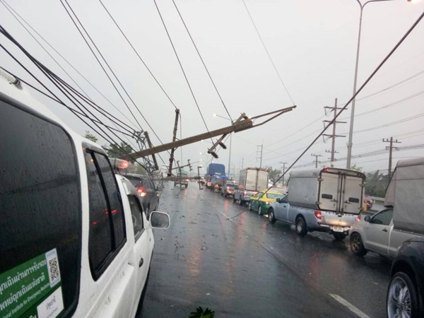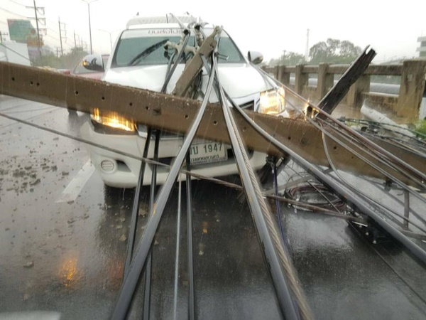 ปทุมธานีอ่วม พายุฝนซัดกระหน่ำถนนรังสิต-นครนายก เสาไฟฟ้าล้มระเนระนาด ทับรถยนต์พังเสียหาย ด้านซอยรังสิตภิรมย์-ม.กรุงเทพ น้ำท่วมระดับฟุตปาธ ทำรถติดหนัก ขณะที่ จ.บุรีรัมย์ ก็เจอไม่แพ้กัน ฟ้าผ่าวัวตายทั้งกลม