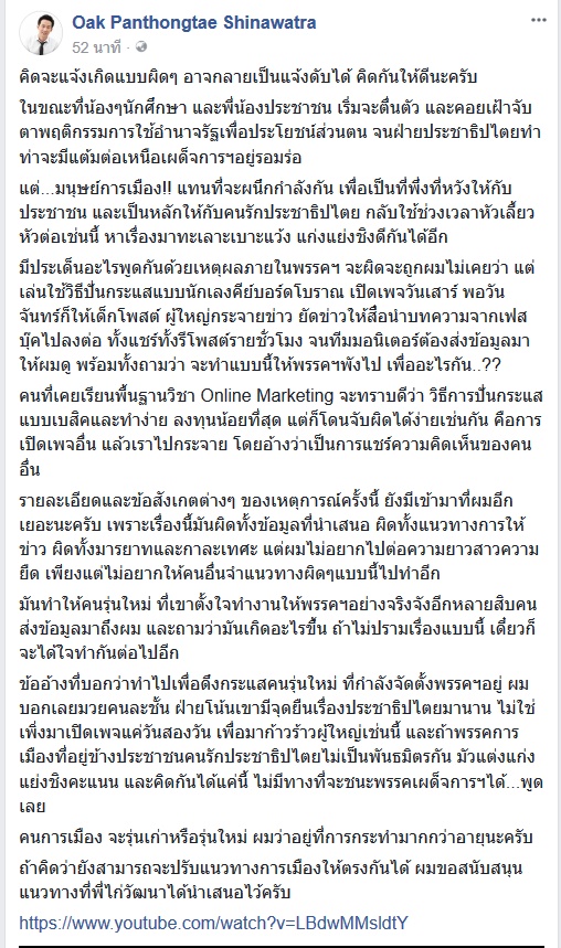 เฟซบุ๊ก Oak Panthongtae Shinawatra