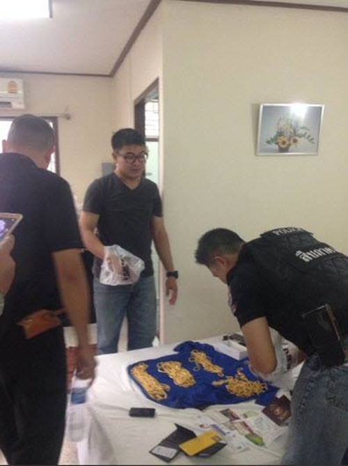 ทั้งนี้หลังการบุกเข้าจับกุม พบตัวนายโมฮาเหม็ด อิบรอฮิม อาลมาลกี ชายชาวกาตาร์ และ น.ส.อาอิซะห์ อุดมวัฒนานนท์ พักอาศัยอยู่ภายในห้องดังกล่าว โดยพบของกลางเป็นทองรูปพรรณ คละแบบจำนวน 50 เส้น น้ำหนักรวม 2,184 กรัม บรรจุอยู่ในกระเป๋าเป้สีดำคาดน้ำเงิน ก่อนจะนำตัวมาสอบสวนที่ สภ.บางละมุง อ.บางละมุง จ.ชลบุรี