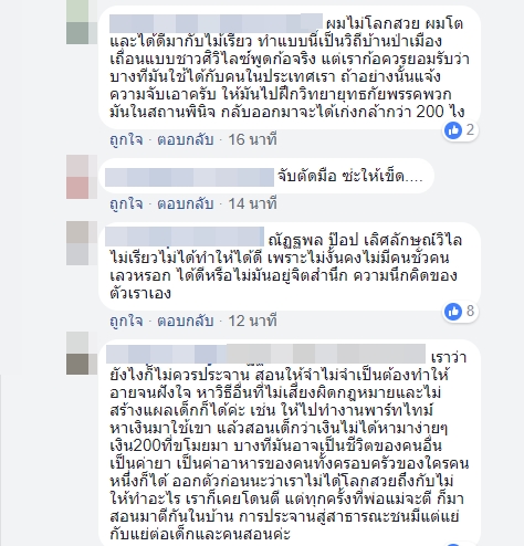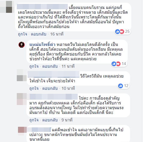 ทั้งนี้ภายหลังจากที่มีการแชร์ภาพดังกล่าว ได้มีคนเข้ามาแสดงความคิดเห็นมากมาย โดยบางคนมองว่าเป็นการทรมานเด็ก ลงโทษเกินกว่าเหตุ เพราะเด็กยังเด็กอยู่ ยังสามารถสั่งสอนตักเตือนได้ ในขณะที่บางส่วนมองว่าเขาเลี้ยงแบบคนโบราณ ครั้งเดียวจะได้จำจนตาย เด็กสมัยนี้แตะไม่ได้ อ่อนไม้ ปัญหาถึงได้มีเยอะกว่าสมัยก่อน
