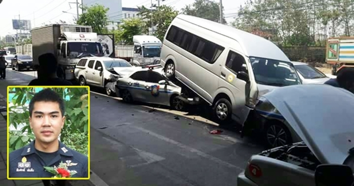 สืบศักดิ์ ผันสืบ อดีตนักตะกร้อทีมชาติไทย หวิดสิ้นชื่อ รถบรรทุกไก่เบรกแตกพุ่งชนรถนำขบวนทหาร อัดก๊อบปี้ท้ายรถพ่วงขณะติดไฟแดง กลางเมืองนครปฐม