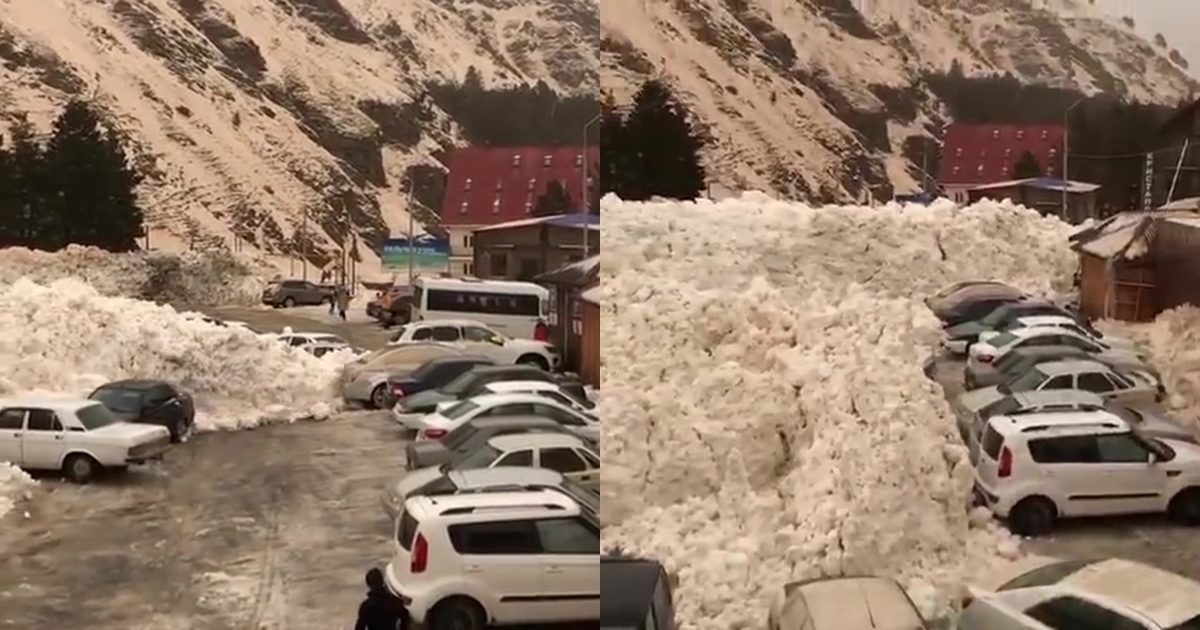 วันที่ 24 มีนาคม 2561 เว็บไซต์ sputniknews.com รายงานว่า เกิดเหตุหิมะถล่มทับลานจอดรถ ภายในเขตภูเขาเอลบรุส สาธารณรัฐคาบาดิโน-บอลเกอร์ ของรัสเซีย โดยจากคลิปที่มีผู้เห็นเหตุการณ์บันทึกภาพไว้ได้นั้น เผยให้เห็นกลุ่มคนจำนวนมากที่แห่กันมาดู ช่วงเวลาที่มวลหิมะสีส้มกำลังถล่มลงมาจากภูเขา ทับลงมายังลานจอดที่อยู่ด้านล่าง จนหิมะดังกล่าวได้กลบฝังรถยนต์ที่จอดอยู่ไปนับสิบคัน