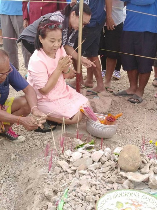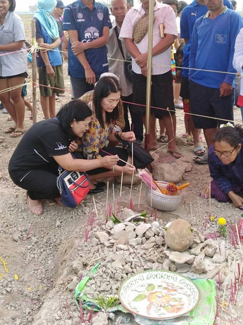 ต่อมาจึงไปแจ้งผู้ใหญ่บ้าน กำนัน และนายก อบต.ปะเคียบ ให้มาตรวจว่าเป็นกระดูกของคนในยุคปัจจุบันหรือยุคโบราณ พอชาวบ้านทราบข่าวต่างพากันมาดูเป็นจำนวนมาก พร้อมบอกว่าน่าจะเป็นโครงกระดูกมนุษย์โบราณอายุหลายร้อยปี จากนั้นก็พากันนำดอกไม้ ธูป เทียน ขนมหวาน น้ำเปล่า น้ำส้ม มากราบไหว้ตามความเชื่อ