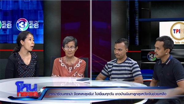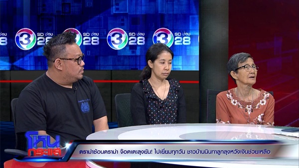 เต้ : ใช่ครับ เพราะตอนแรกเราได้รับสารจากแหม่มโพธิ์ดำ เบื้องต้นคือดูคุณตาก่อน อันที่สองค่อยช่วยเรื่องคดี พอเรื่องคดีเรามาถามทางตำรวจถามหลาย ๆ ฝ่าย มันยังไม่ได้เป็นปัญหาอะไร แม้แต่ก้อนเงินที่บอกว่าช่วย 8 หมื่น ตอนแรกผมก็บอกว่าน้อยจัง จะขอช่วยเพิ่มได้มั้ย แต่พอมาถามทางนี้ ทางคุณยาย ทางเจี๊ยบ หรือทางพี่ไก่เองเขาบอกเขาโอเคแล้ว เพราะถือว่าเป็นกรรม ระหว่างที่จ๊อดกับคุณตามีด้วยกัน ถ้าจะต้องมาทะเลาะเรื่องนี้ เขาก็ขอจบแค่ตรงนี้ ก็แฮปปี้กับข้อที่คุยกันไป