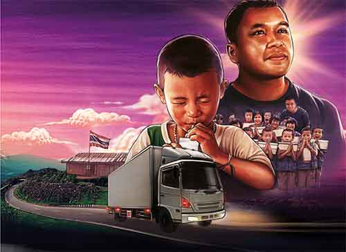 The Art of Hero Trucker การเปลี่ยนแปลงลวดลายไม่มีความหมายบนรถให้มีความหมาย ด้วยการเพ้นท์ลายที่เล่าเรื่องราวดีๆ ของคนขับรถบรรทุก โดยเราให้ศิลปินโดยสารไปกับคนขับรถบรรทุก เพื่อซึมซับเรื่องราวชีวิตของเขาตลอดการเดินทาง ก่อนจะนำแรงบันดาลใจที่ได้รับมาออกแบบเป็นลายสำหรับการเพ้นท์รถรอบคัน ซึ่งทุกรายละเอียดเล่าเรื่องราวการเดินทางของคนขับที่ต้องจากครอบครัว เข้าสู่เส้นทางที่มีอุปสรรคมากมาย ทั้งเรื่องสภาพถนน ความลำบากของชีวิตบนรถ ความปลอดภัย การช่วยเหลือคนอื่น ความรับผิดชอบ ซึ่งเป็นเรื่องราวที่น้อยคนจะเห็น