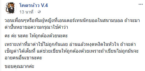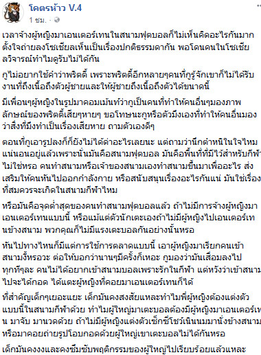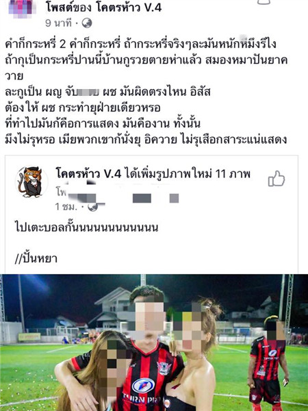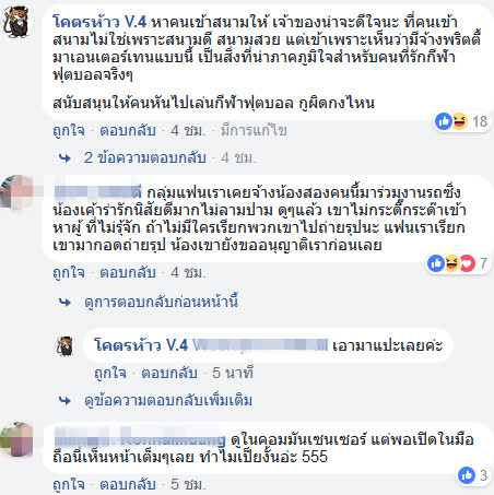 เมื่อวันที่ 27 มีนาคม 2561 เพจเฟซบุ๊ก โคตรห้าว V.4 ได้โพสต์ภาพนักเตะและสาว ๆ พริตตี้เอนเตอร์เทน แลดูมีความฟินกันทั้งสนามเลยทีเดียว โดยทางเพจได้ระบุว่า "ไปเตะบอลกั๊นนนนนนนนนนนน"