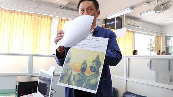 รายงานระบุว่า ภาพดังกล่าวนั้นถูกเผยแพร่โดยเฟซบุ๊ก Citylife Chiang Mai ซึ่งใช้ประกอบกิจกรรมชวนให้ชาวเชียงใหม่ใส่หน้ากากป้องกันฝุ่นควัน รวมตัวกันที่ลานอเนกประสงค์ข่วงประตูท่าแพ ในวันนี้ (30 มีนาคม) เพื่อร้องขอให้ทางการช่วยปรับปรุงสถานการณ์เกี่ยวกับสภาพอากาศ แต่ปรากฏว่าภาพดังกล่าวได้สร้างความไม่พอใจให้กับชาวเชียงใหม่บางส่วน ก่อนจะถูกลบออกไปและมีการยกเลิกกิจกรรมดังกล่าว